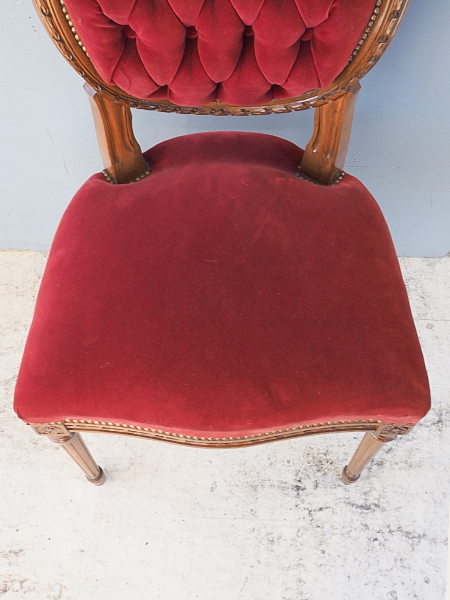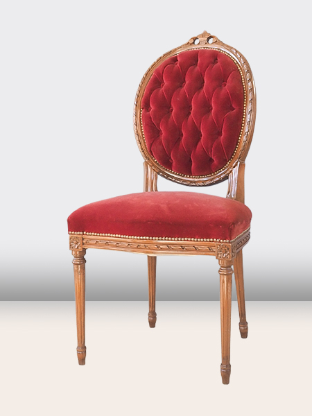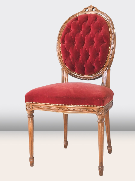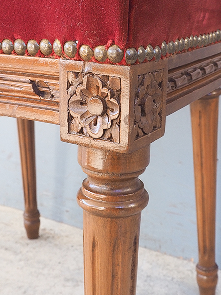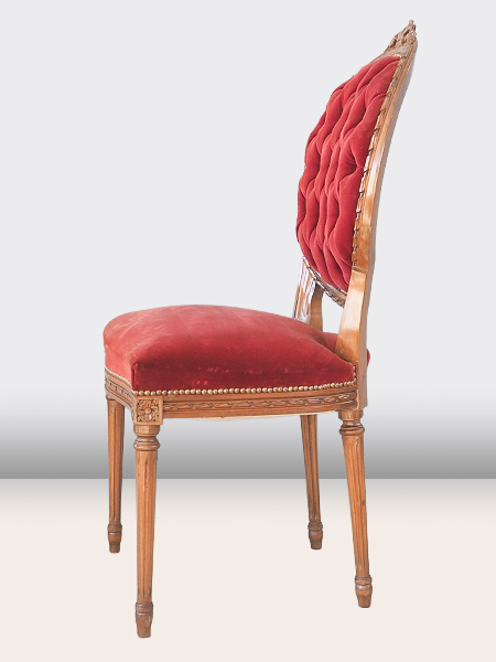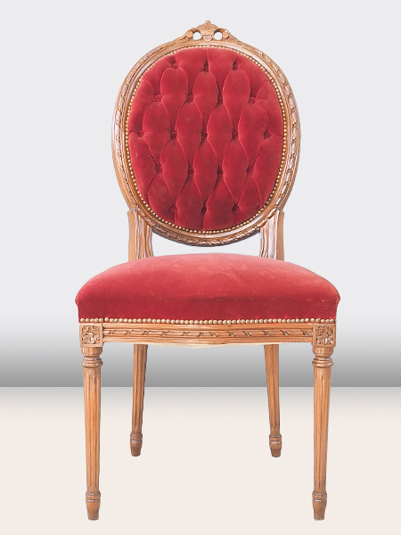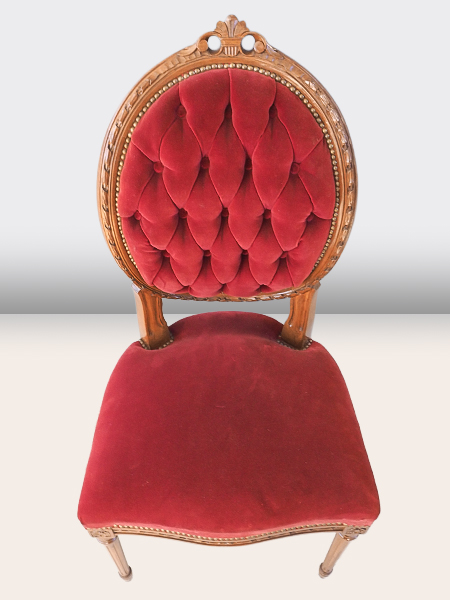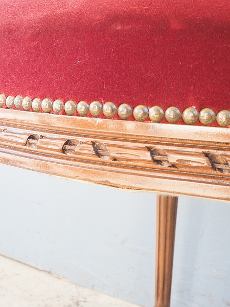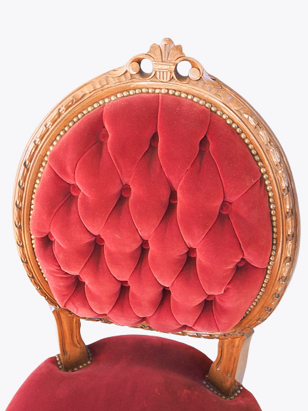 落ち着きのあるえんじ色のファブリック 背面のボタン止めが美しい