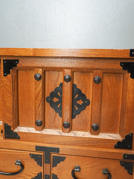 民芸調戸棚付小引出し箱 新着商品 2026.03.27 民芸調戸棚付小引出し箱ID:ilb23879980円(税込) 商品に関するお問い合わせ お気に入り登録 梱包済玄関引渡し便明るい﨔の木目と黒い飾り金具がベストマッチ 昭和後期 状態良しサイズ (cm) 幅42.5 奥行21.5 高さ32 送料ランクMB▽ 送料&配送について ▽〈送料について〉・商品代金に送料は含まれておりません。・送料は、商品のサイズ・発送先地域によって異なります。・ご購入手続きを進める途中で「宅急便」を選択いただくと、自動的に送料が加算されます。・配送についての詳細は、こちら→ ※沖縄県につきましてはお手数をお掛け致しますが、店舗までお問い合わせ下さい。03-3468-0853 1 / 1このページの先頭へ