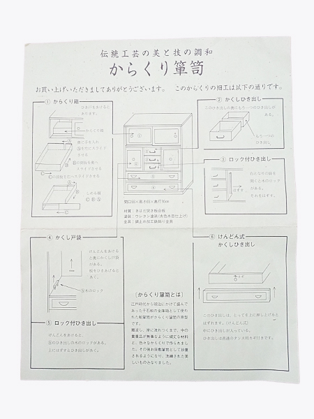 民芸調からくり箪笥 新着商品 2026.03.27 民芸調からくり箪笥ID:ilb238029980円(税込) 商品に関するお問い合わせ お気に入り登録 梱包済玄関引渡し便幾つもの仕掛けがあり簡単には 開けられないからくり箪笥サイズ (cm) 幅55.5 奥行31 高さ65.5 送料ランクLB▽ 送料&配送について ▽〈送料について〉・商品代金に送料は含まれておりません。・送料は、商品のサイズ・発送先地域によって異なります。・ご購入手続きを進める途中で「宅急便」を選択いただくと、自動的に送料が加算されます。・配送についての詳細は、こちら→ ※沖縄県につきましてはお手数をお掛け致しますが、店舗までお問い合わせ下さい。03-3468-0853 1 / 1このページの先頭へ