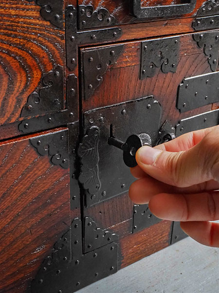 総﨔材鍵付時代小箪笥(新潟・村上)