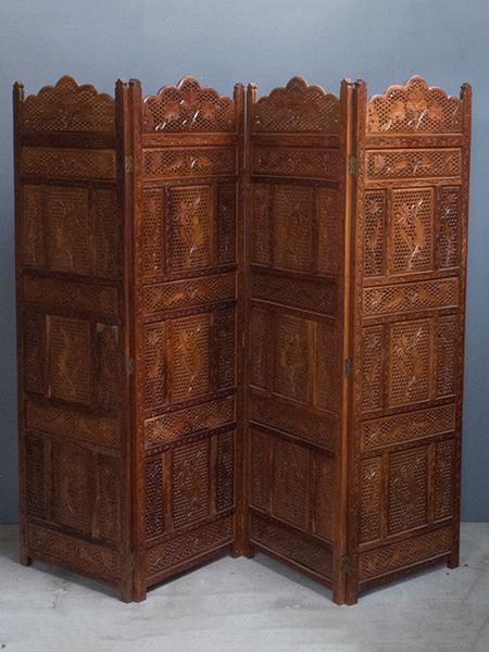 インド彫4枚折屏風