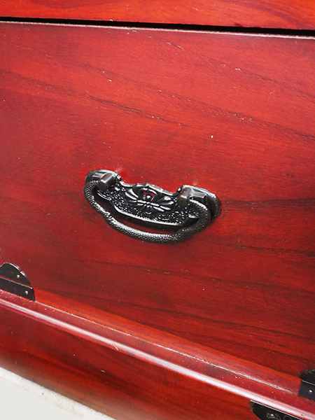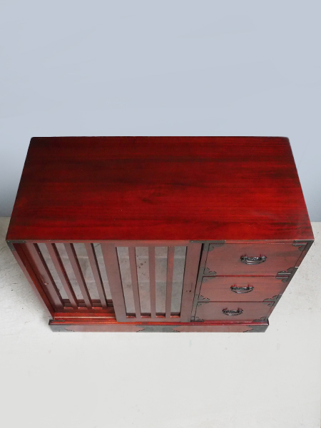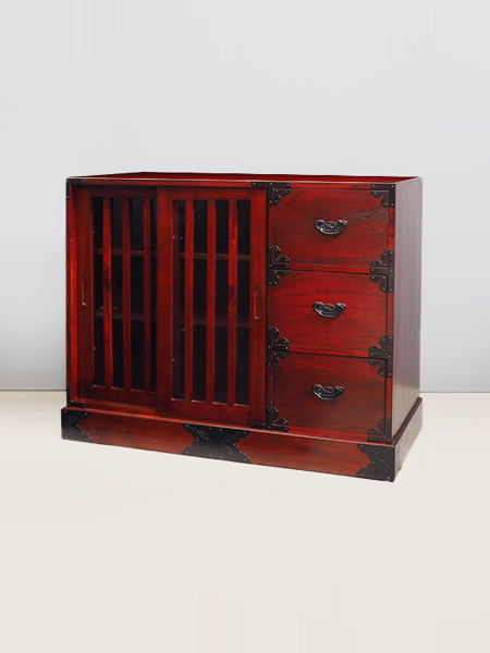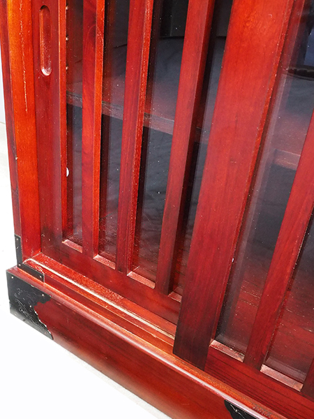 民芸調引出し付硝子戸棚