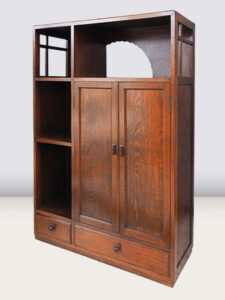 <棚板取り外し可> 暗めの色に抜けのデザイン が加わり独特な趣を感じる